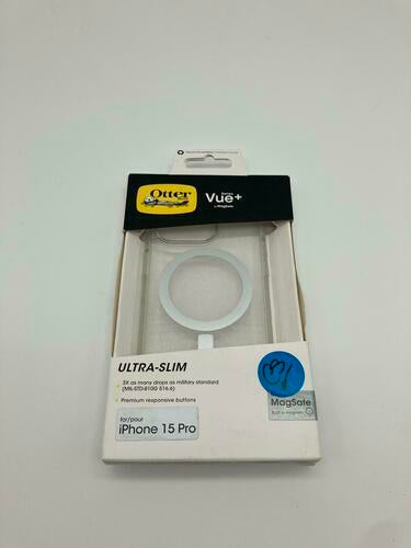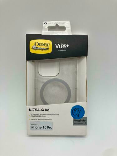 Get the most out of your new Apple iPhone with OtterBox Vue Series+ with MagSafe. This slim case shows off your iPhone?s sleek design and was thoughtfully developed to interact with Apple?s new innovative MagSafe system ?bringing a new level of interactivity to your iPhone. All of your phone?s buttons features and functions work flawlessly while durable protection shields against drops bumps and fumbles. Additionally a silver-based antimicrobial additive is integrated into the case that helps inhibit microbial growth and defends the case exterior against many common bacteria. And the one-piece design is easy to install. Go about your life with confidence your phone is protected without sacrificing an ounce of style.